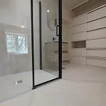 La Grande maison familiale avec piscine chauffée, wifi et parking à Pranzac - FR-1-653-284 incluye un cuarto de baño con una ducha y una lavadora. Las comodidades de los cuartos de baño incluyen una secadora.